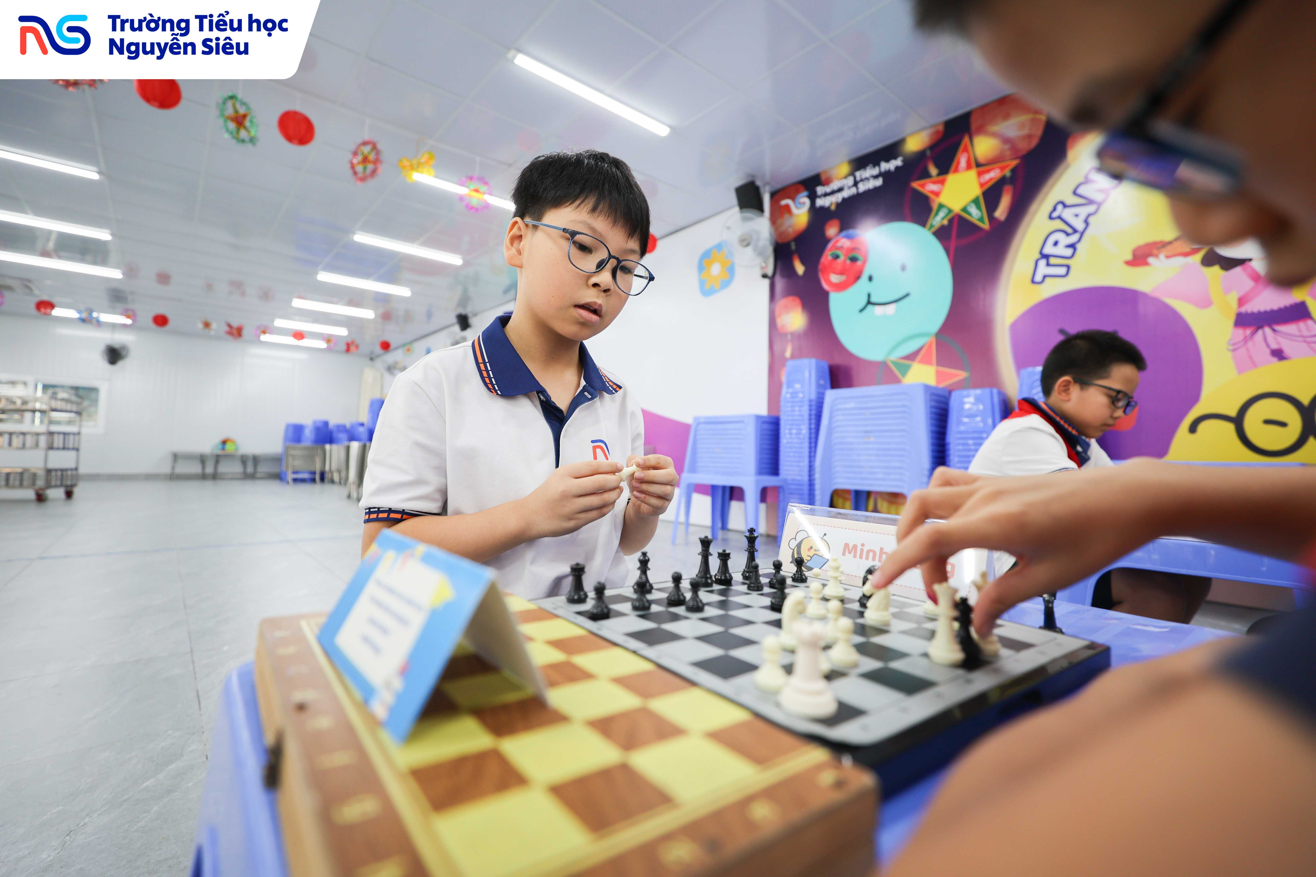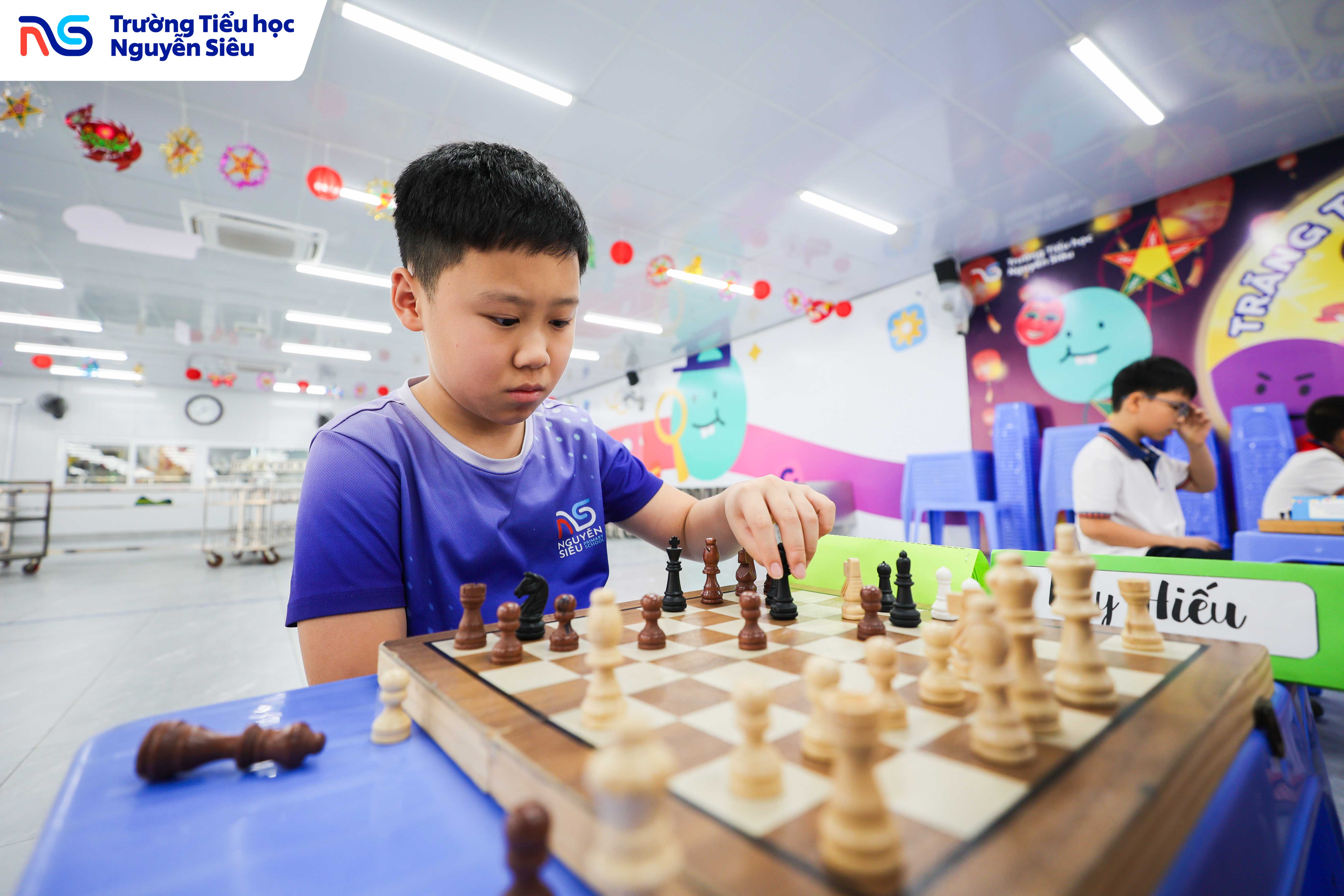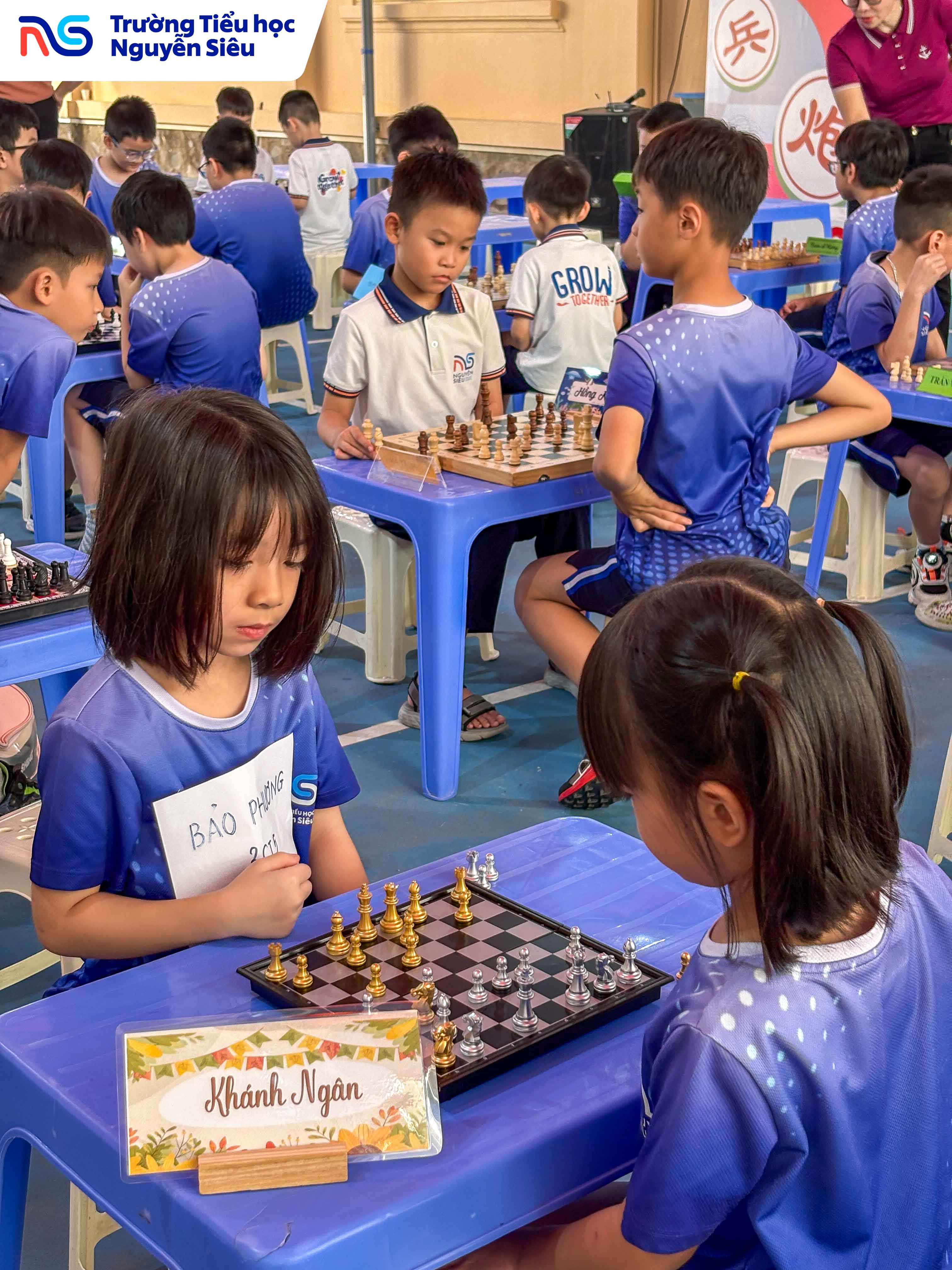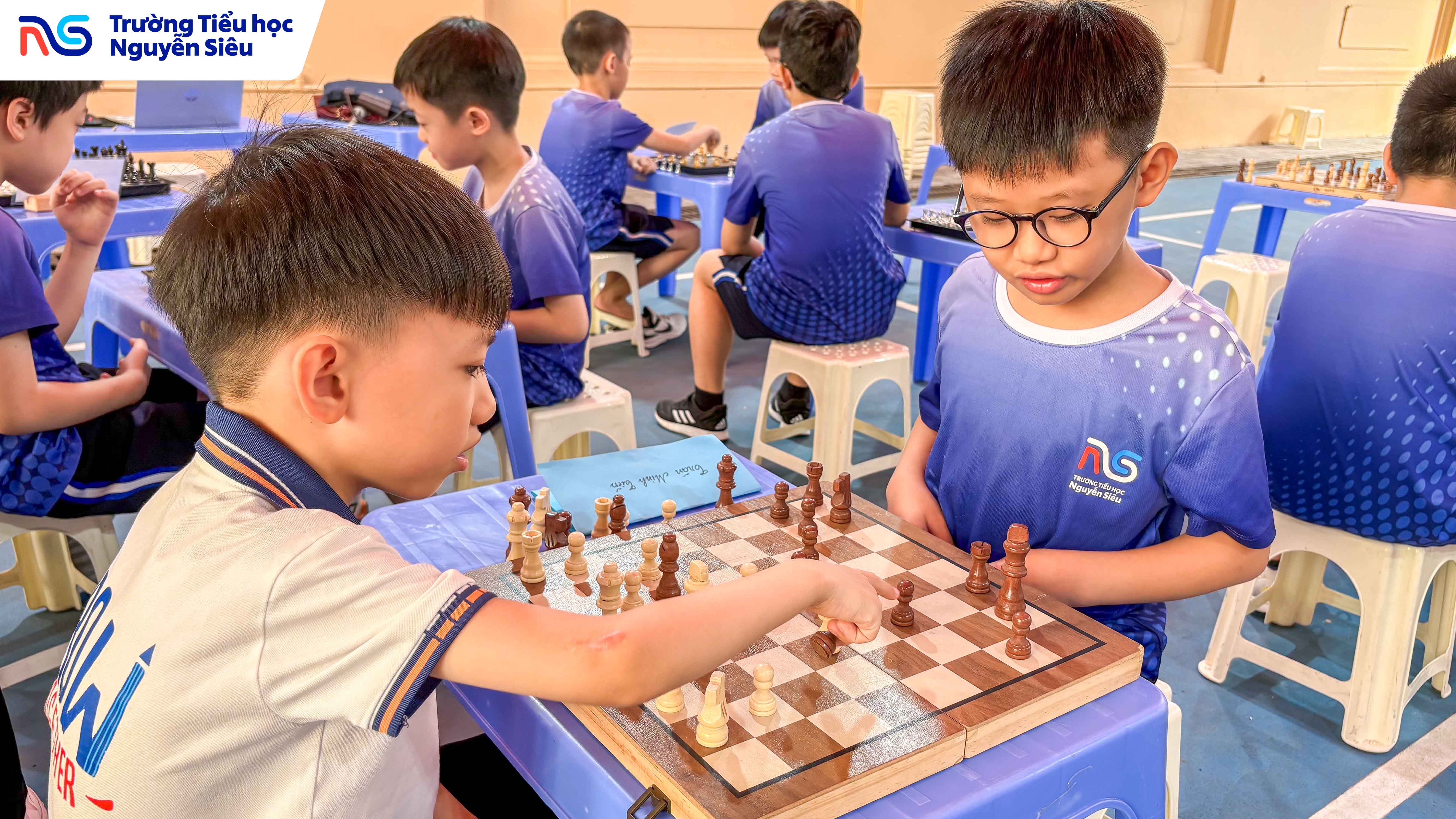 Giải đấu Cờ vua – Cờ tướng cấp trường đã trở thành hoạt động thường niên được mong đợi tại Trường Tiểu học Nguyễn Siêu. Đây không chỉ là nơi để học sinh thể hiện năng khiếu và bản lĩnh thi đấu, mà còn là dịp để các con giao lưu, học hỏi và lan tỏa tinh thần thể thao. Mỗi ván cờ là một bài học về chiến lược, về sự kiên trì và khả năng giữ bình tĩnh trước mọi tình huống – những giá trị sẽ theo các con vượt xa khỏi bàn cờ, bước vào đời sống thực tế.