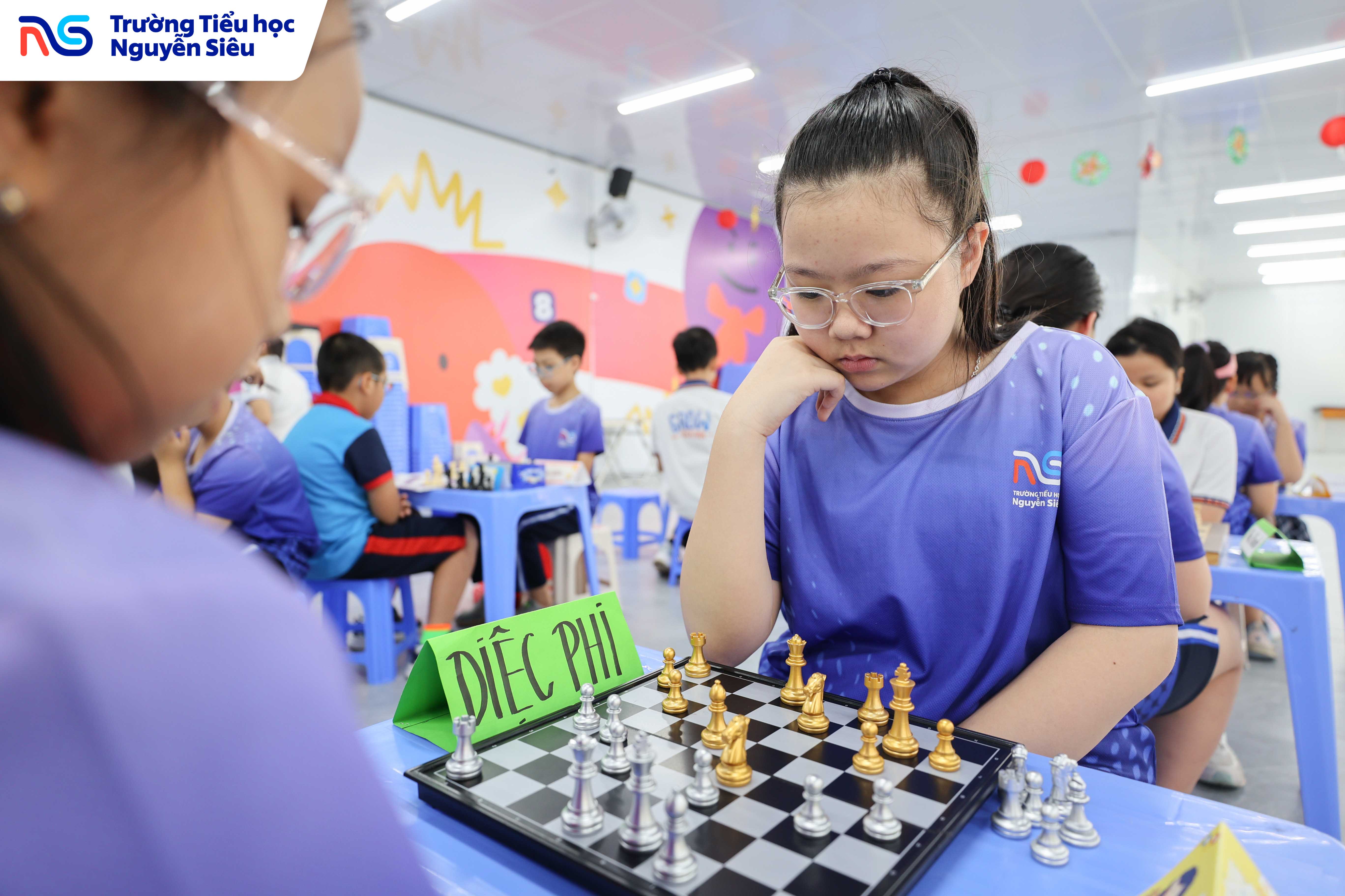 Trong bầu không khí tập trung cao độ, từng nước cờ được tính toán cẩn trọng, từng ánh mắt ánh lên sự quyết tâm. Mỗi lần di chuyển quân cờ là một khoảnh khắc thể hiện bản lĩnh và sự tự tin của những kỳ thủ nhí. Đằng sau những ván đấu căng thẳng là quá trình rèn luyện tư duy, khả năng quan sát và kỹ năng xử lý tình huống – hành trang quan trọng giúp các con ngày càng trưởng thành hơn trên con đường học tập và khám phá bản thân.