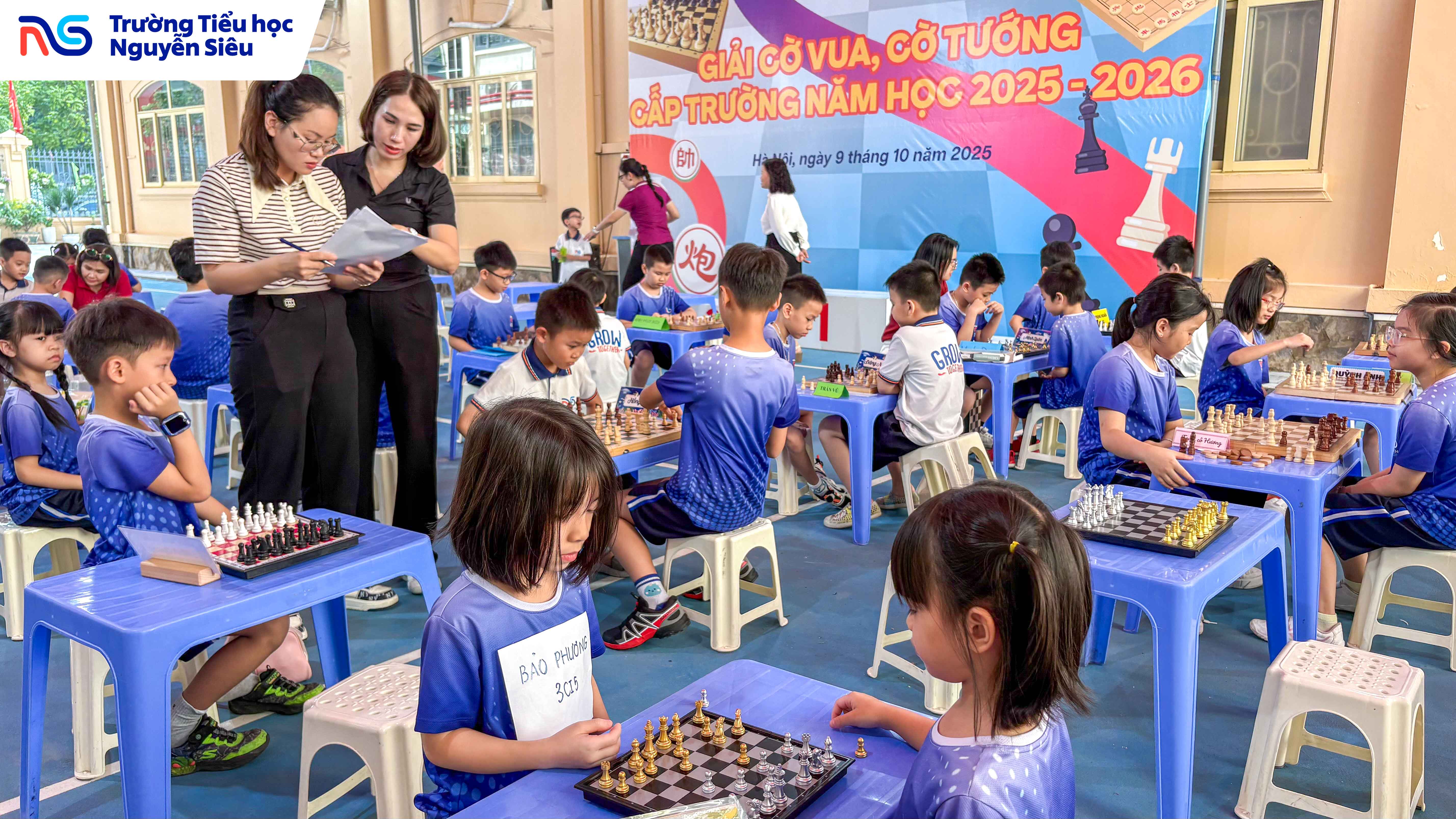 Trong hành trình nuôi dưỡng trí tuệ và rèn luyện nhân cách cho học sinh, Trường Tiểu học Nguyễn Siêu luôn chú trọng tạo ra những sân chơi ý nghĩa, giúp các con phát triển tư duy, bản lĩnh và tinh thần thi đấu lành mạnh. Giải Cờ vua – Cờ tướng cấp trường được tổ chức thường niên chính là một trong những hoạt động như vậy – nơi mỗi học sinh được thử sức trong “trận đấu trí” đầy thú vị và thách thức.