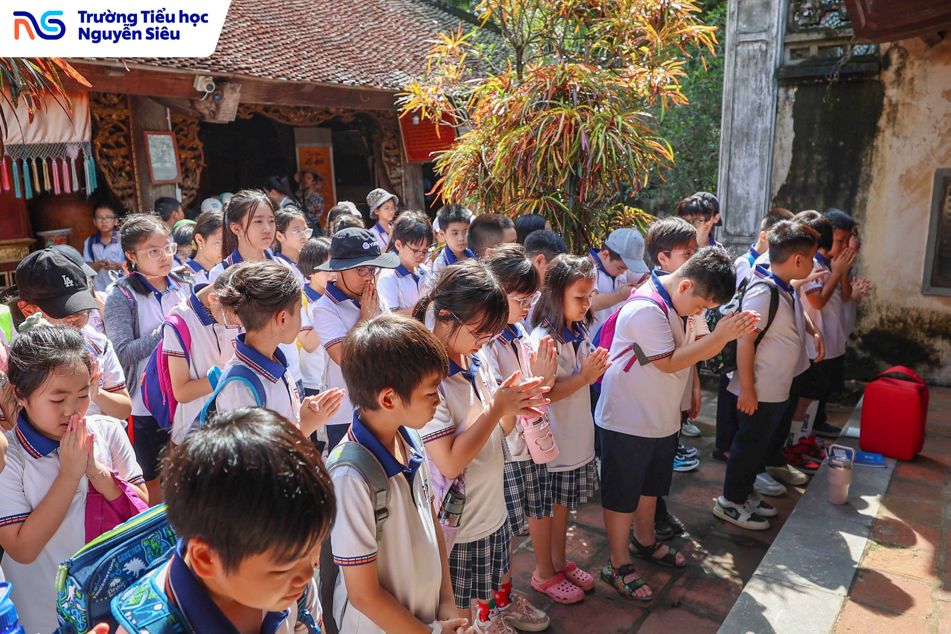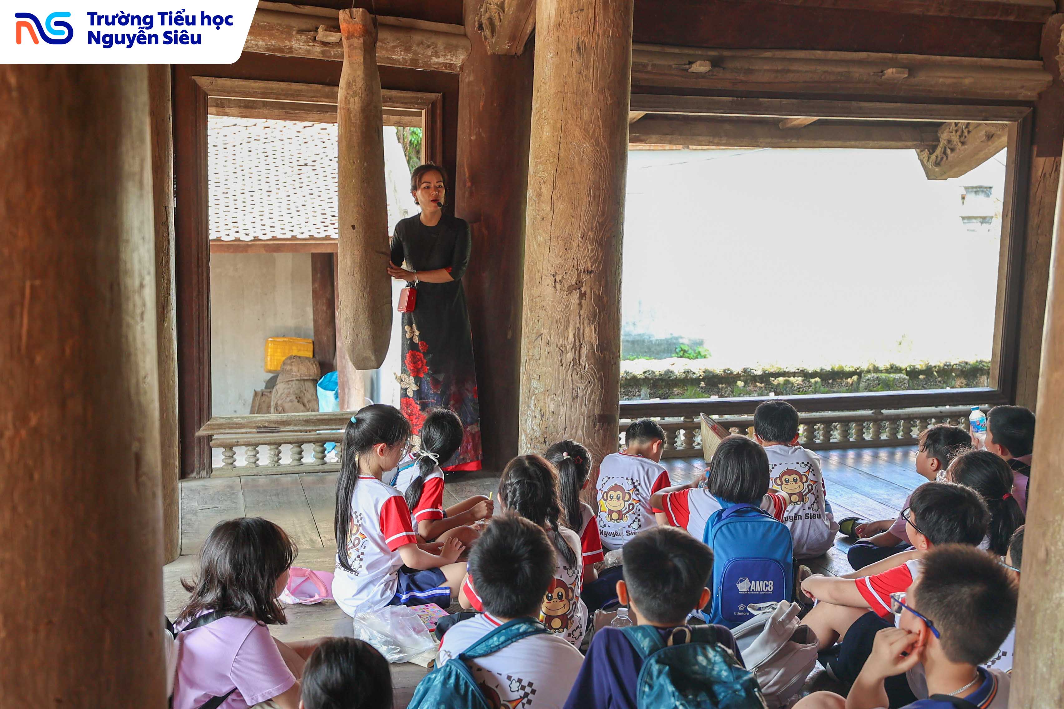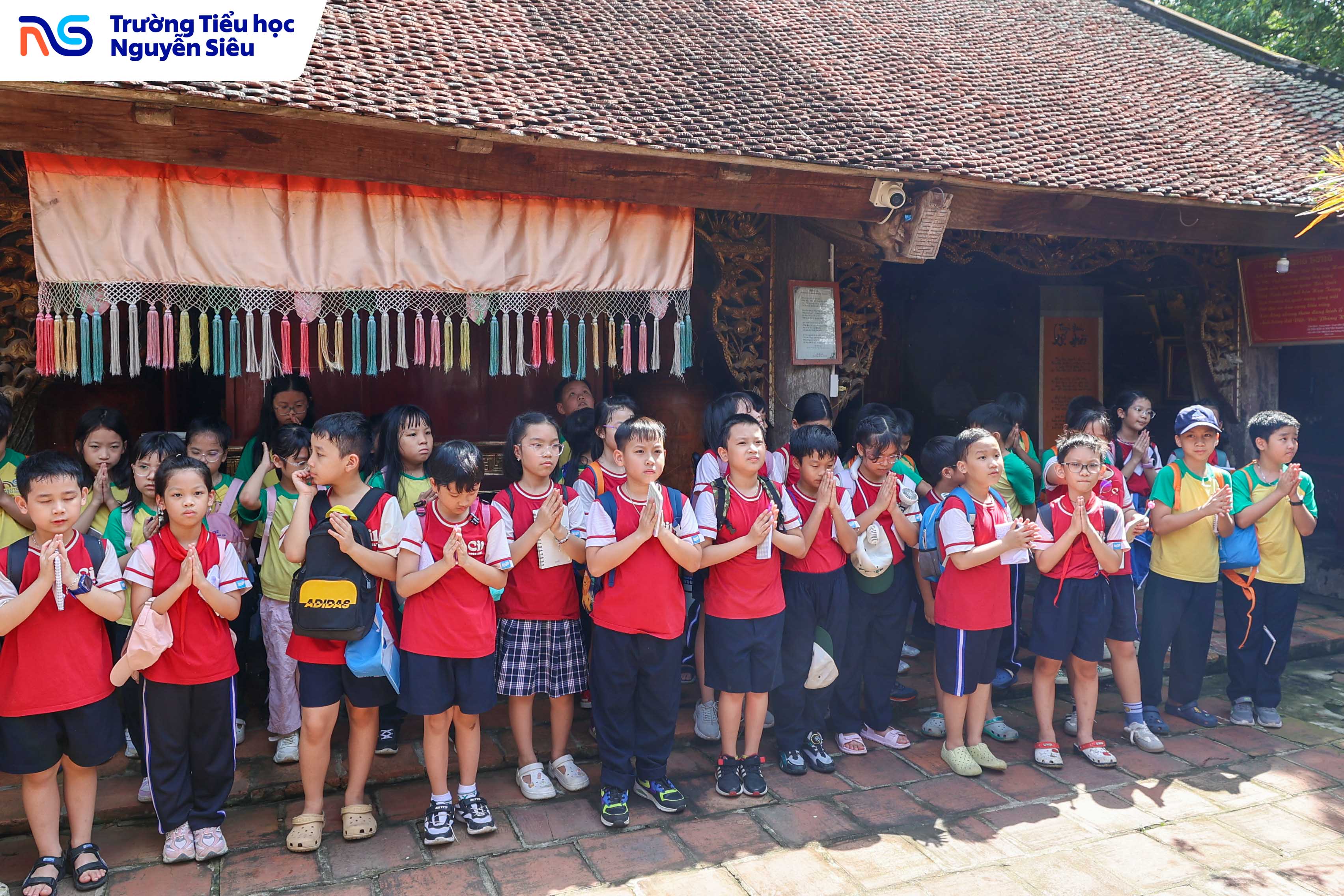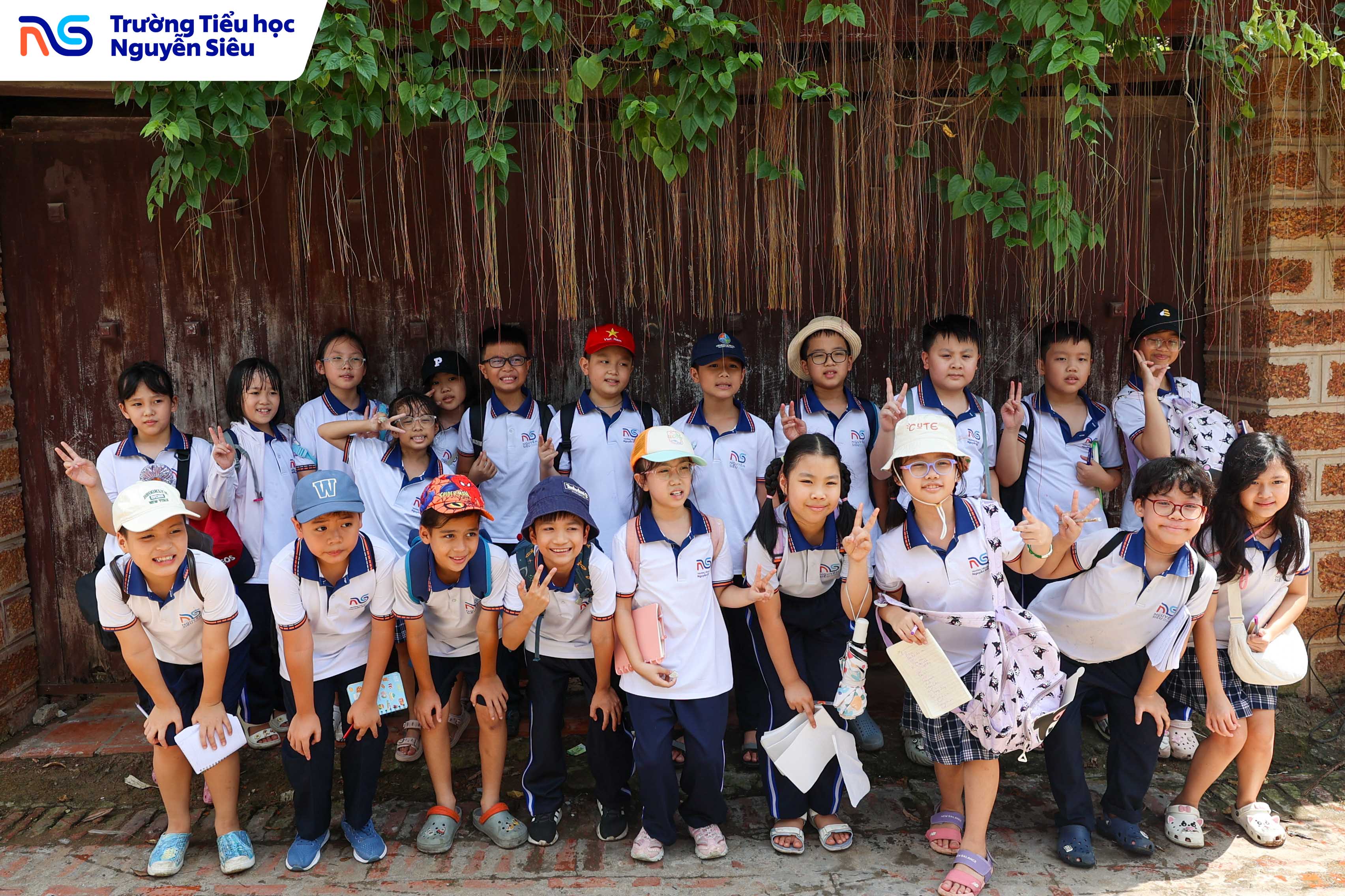 Trong khuôn khổ chương trình học tập trải nghiệm thực tế, học sinh khối 4 Trường Tiểu học Nguyễn Siêu đã có hai ngày tham quan và tìm hiểu tại Làng cổ Đường Lâm (thị xã Sơn Tây, Hà Nội) – ngôi làng thuần Việt lâu đời, nơi được mệnh danh là “bảo tàng sống” lưu giữ những giá trị văn hóa, kiến trúc và tinh thần Việt qua hàng trăm năm lịch sử. Trên hành trình ấy, các con được bước ra ngoài trang sách, chạm tay vào những di sản văn hóa cụ thể, một phương pháp học đầy hứng khởi giúp biến kiến thức khô khan thành trải nghiệm sống động, gần gũi và đầy cảm xúc.
