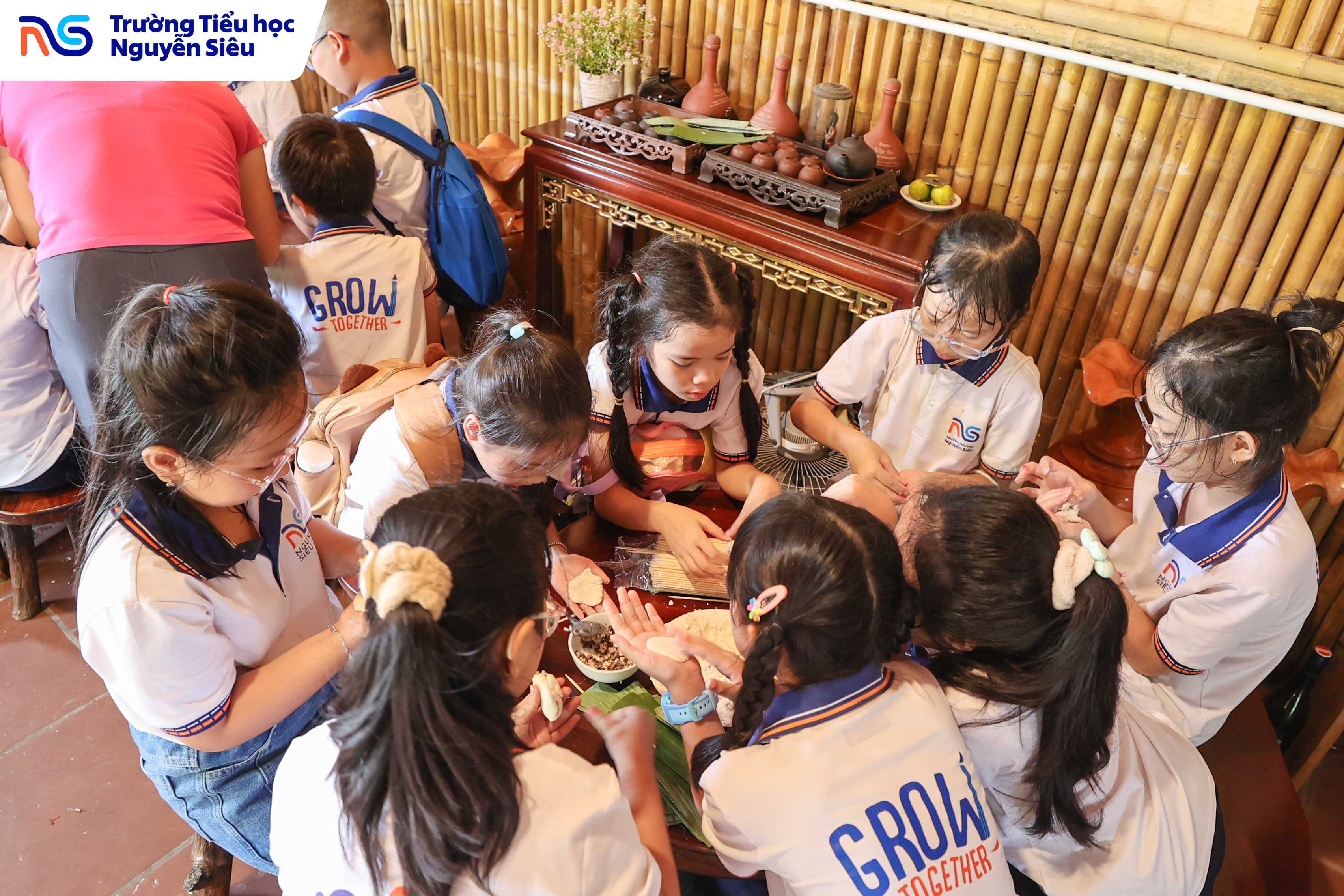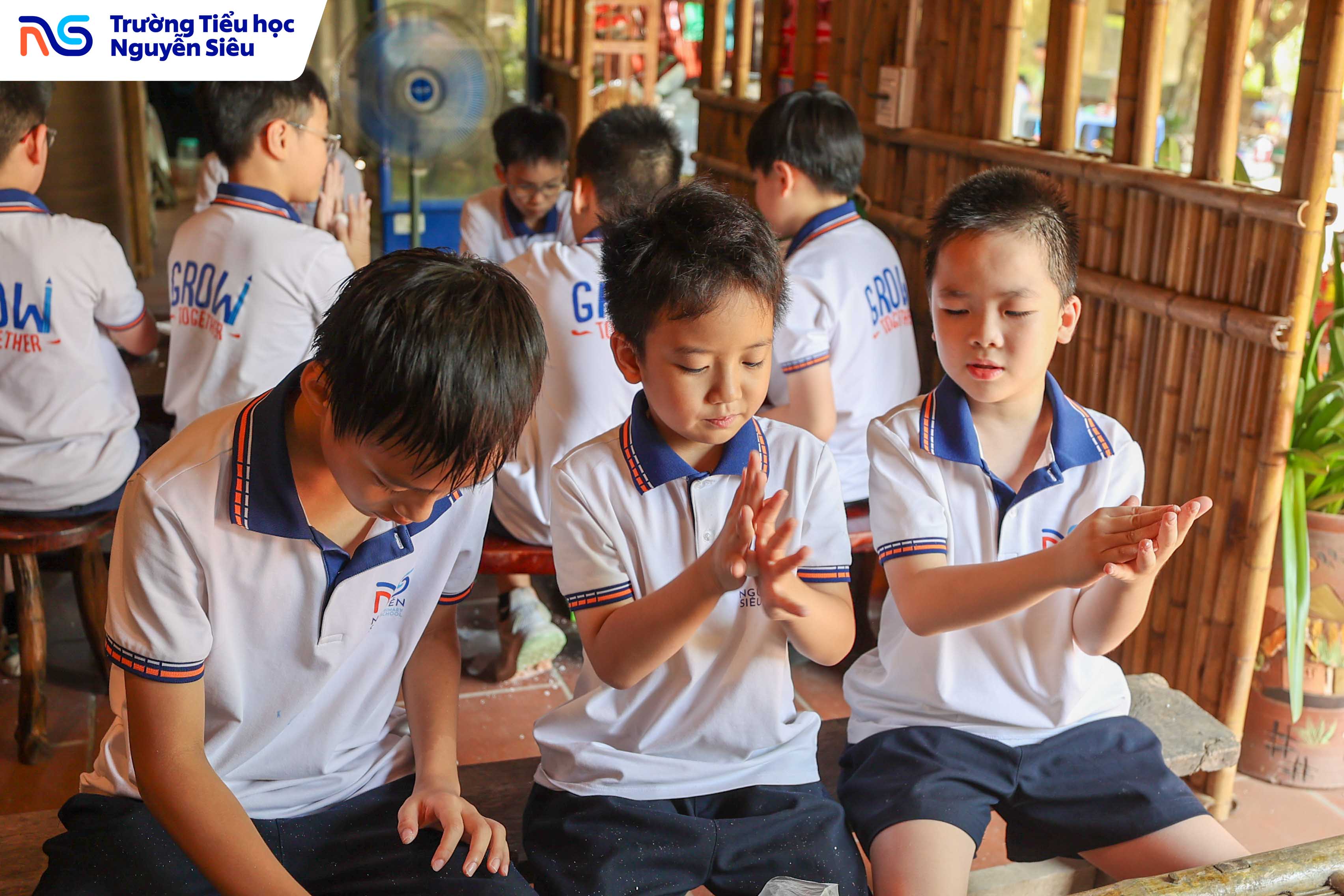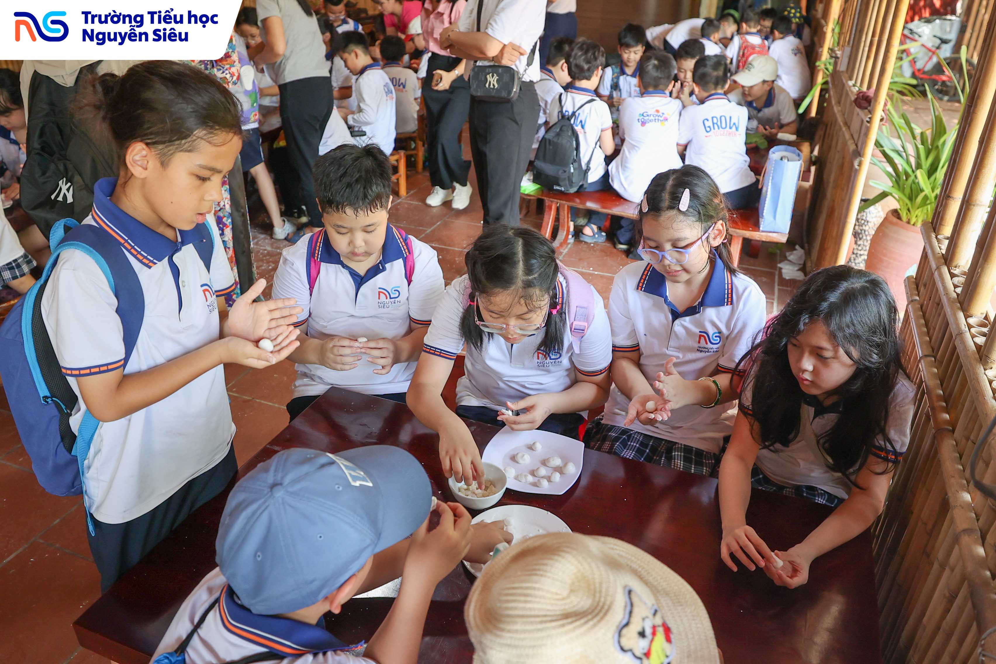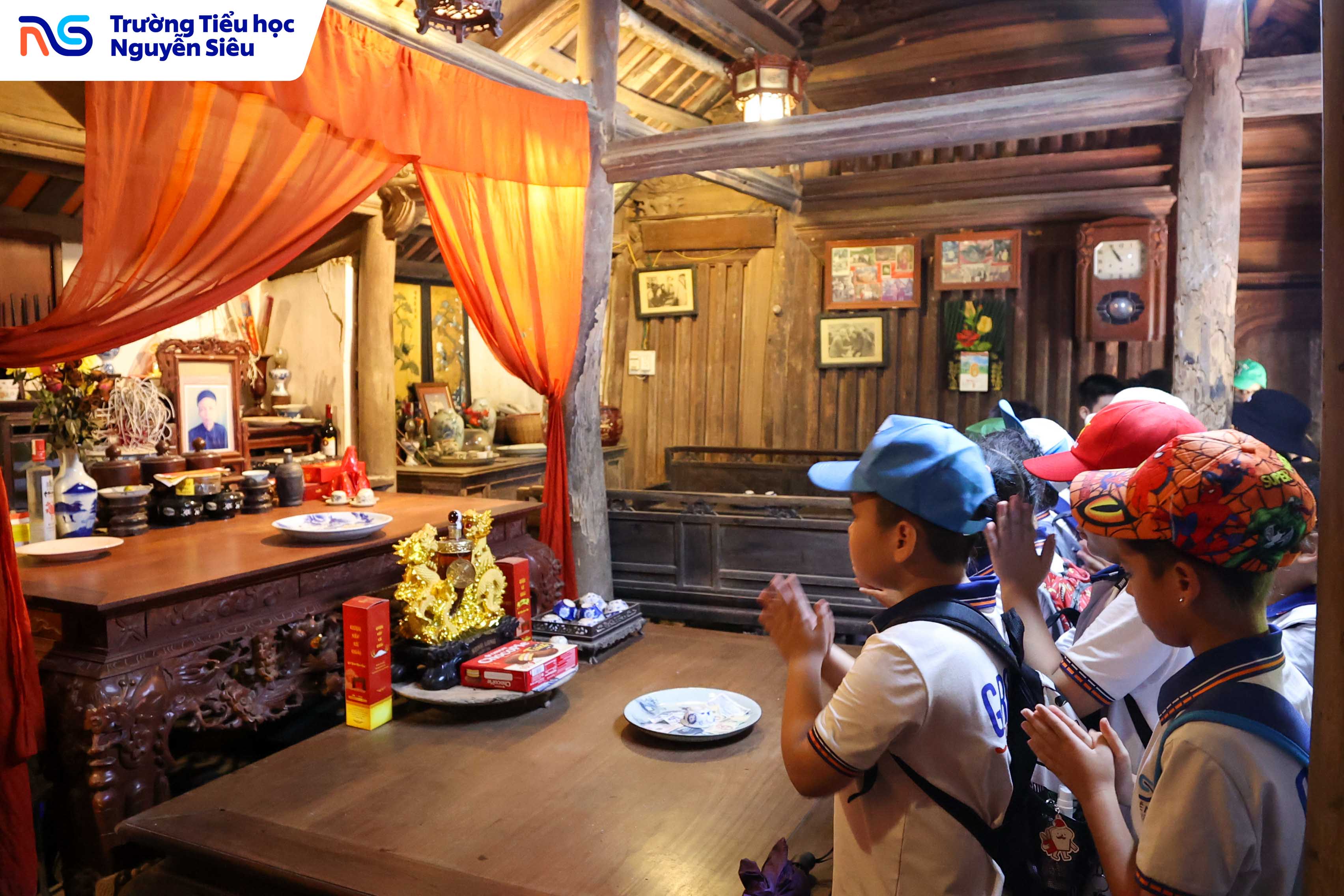 Trong khuôn khổ chương trình học tập trải nghiệm thực tế, học sinh khối 4 Trường Tiểu học Nguyễn Siêu đã có hai ngày tham quan và tìm hiểu tại Làng cổ Đường Lâm (thị xã Sơn Tây, Hà Nội) – ngôi làng thuần Việt lâu đời, nơi được mệnh danh là “bảo tàng sống” lưu giữ những giá trị văn hóa, kiến trúc và tinh thần Việt qua hàng trăm năm lịch sử. Trên hành trình ấy, các con được bước ra ngoài trang sách, chạm tay vào những di sản văn hóa cụ thể, một phương pháp học đầy hứng khởi giúp biến kiến thức khô khan thành trải nghiệm sống động, gần gũi và đầy cảm xúc.